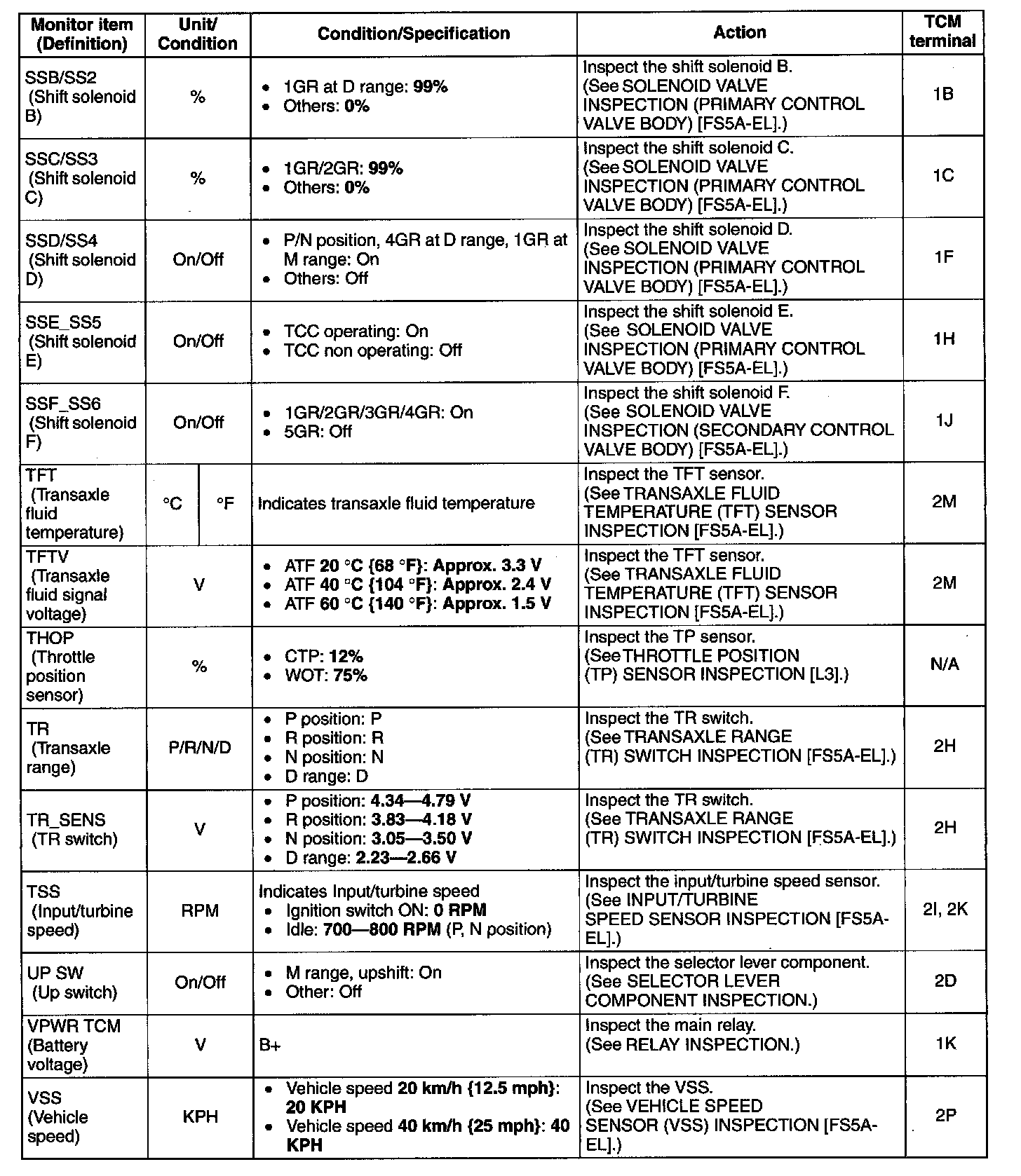 PID/DATA MONITOR AND RECORD function table