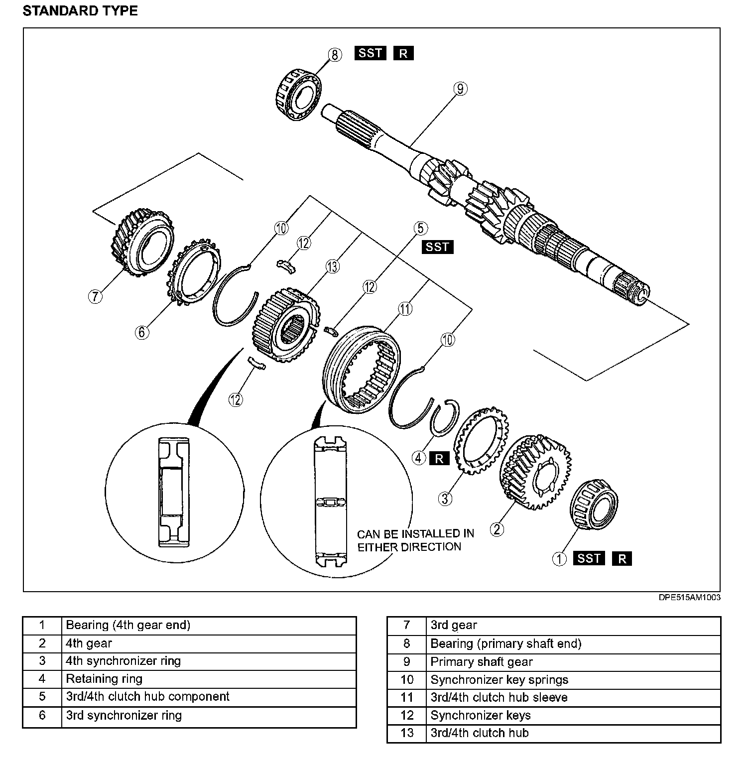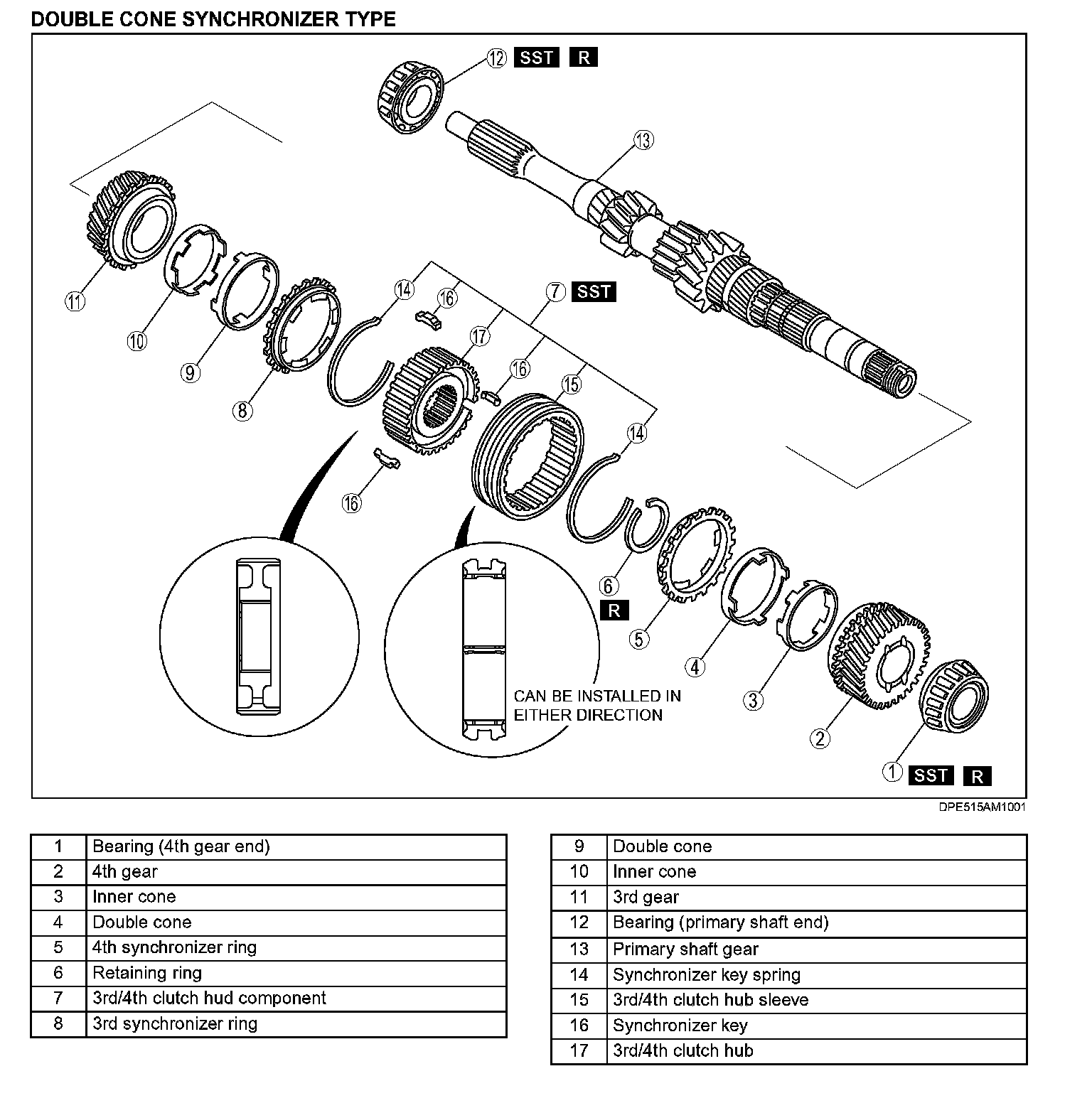 Primary Shaft Components Disassembly (Double Cone Synchronizer Type):