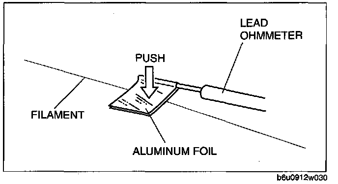 - Directly touching the rear window defroster filament with the lead of the voltmeter will damage it. Wrap aluminum foil around the end of the lead and test the filament by touching it with the foil.