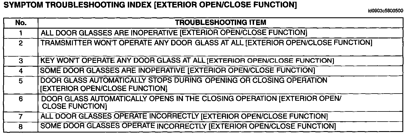 Symptom Troubleshooting [Exterior Open/Close Function]