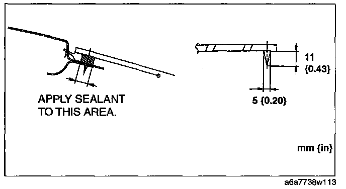7. Apply sealant to the area of the glass surface as shown in the figure.
