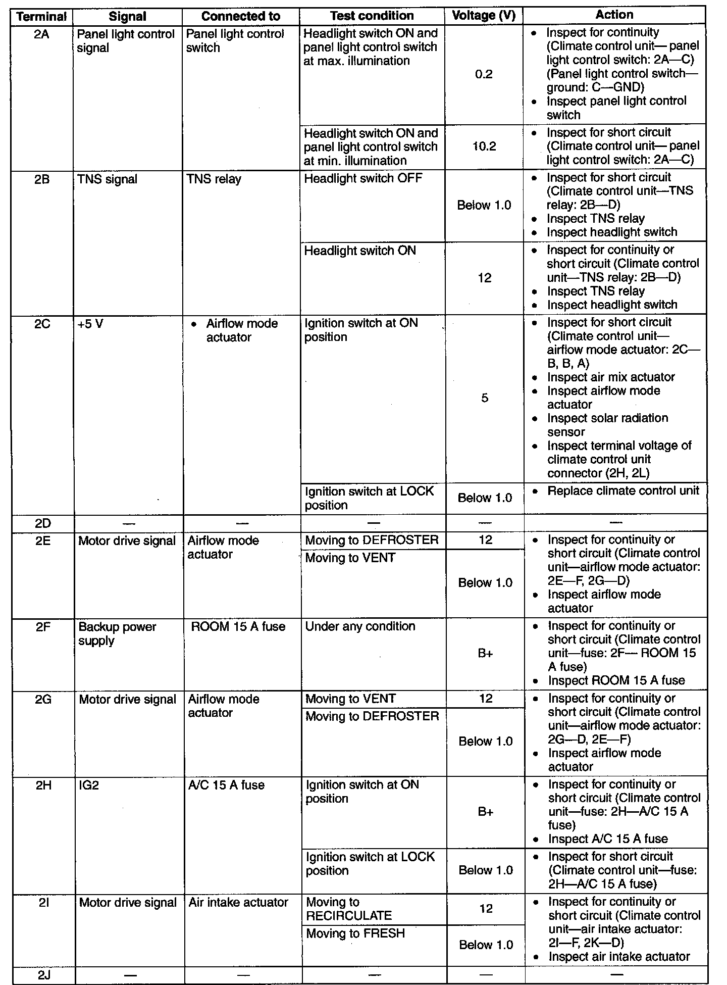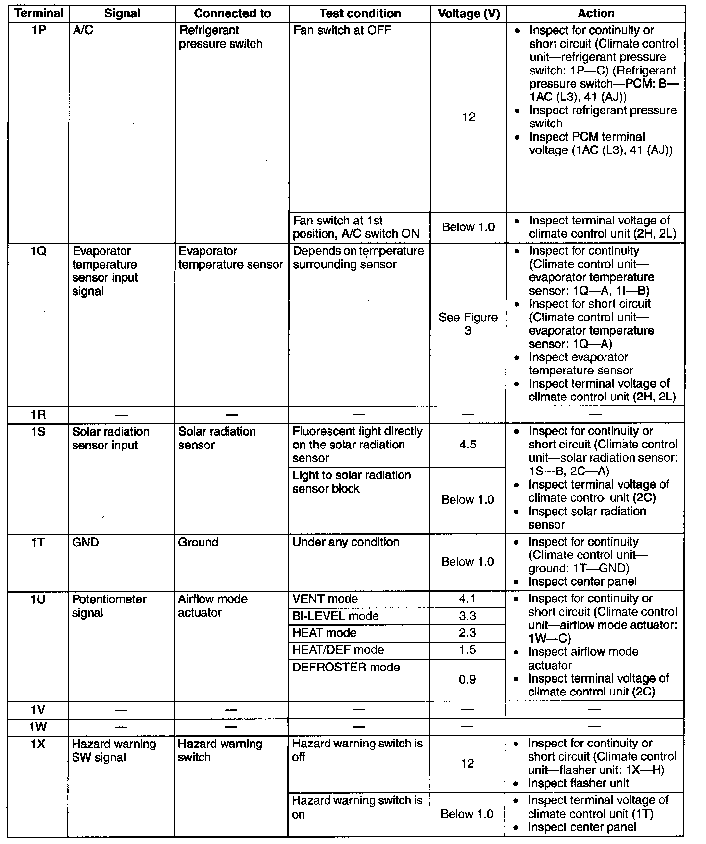 Terminal Voltage List (Reference) (Part 1):
