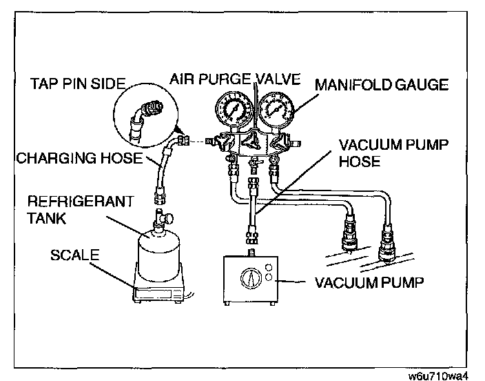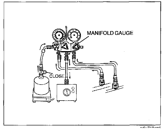 - Close the manifold gauge valve immediately after stopping the vacuum pump. If the valve is left open, the vacuum pump oil will back flow into the refrigeration cycle and cause a decrease in the efficiency of the air conditioner.