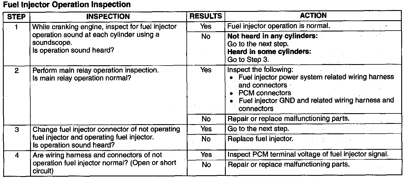 Fuel Injector Operation InspectionStep 1-Step 4: