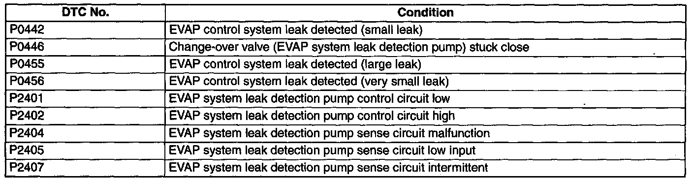 - The EVAP system test finds gas leaks in the system using the PCM to monitor changes in the air pump load current of the EVAP system leak detection pump. This test starts after sending an on-demand test signal from the M-MDS to the PCM. The PCM controls the air pump and change-over-valve operation and also stores the load current of the air pump as follows: