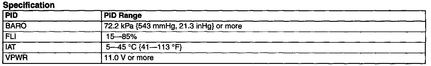 2. Verify that all of the following PIDs are within the specifications at the pre-test confirmation screen.