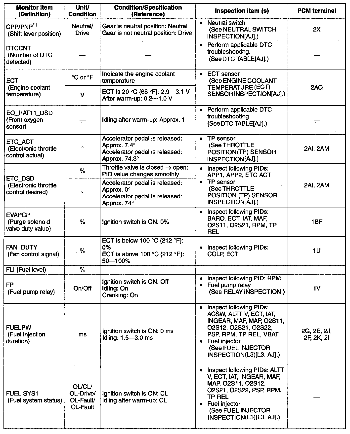 PID/Data Monitor Table(Reference) (Part 1):