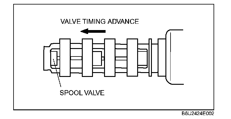 3. Verify that the spool valve in the oil control valve (OCV) is in the maximum valve timing retard position as indicated in the figure.