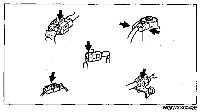 - Inspect the terminals of waterproof connectors form the connector side since they cannot be accessed from the wiring harness side.