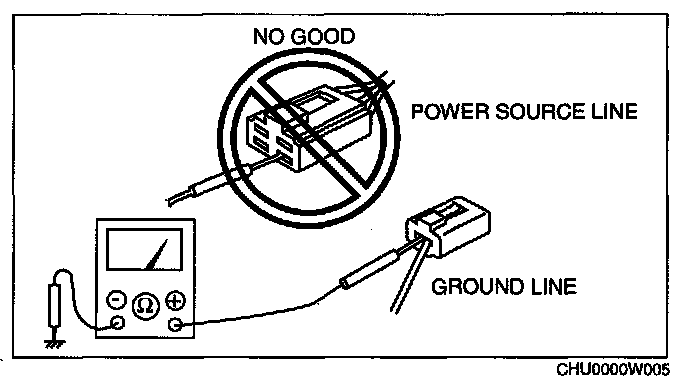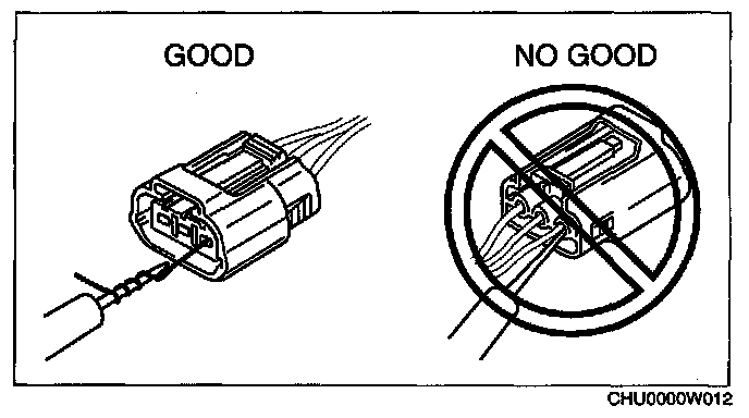 - To prevent damage to the terminal, wrap a thin wire around the tester probe before inserting into terminal.