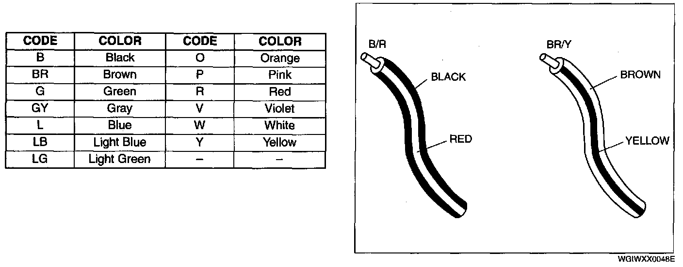 - The first letter indicates the base color of the wire and the second the color of the stripe.