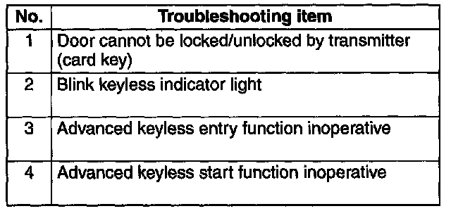 Symptom Troubleshooting Chart [Advanced Keyless System]: