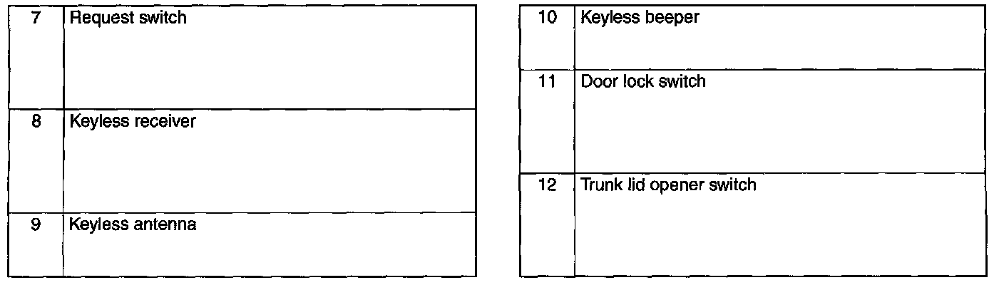 Power Door Lock System And Keyless Entry System Location Index [Advanced Keyless System] (Part-1):