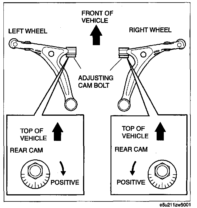 2. Rotate the adjusting cam bolt in either direction to adjust the camber.