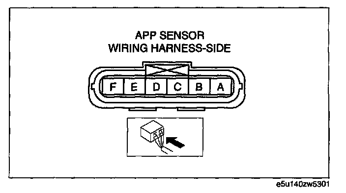 ACCELERATOR PEDAL POSITION (APP) SENSOR INSPECTION [LF]NOTE: Before performing the following inspection, make sure to follow the procedure as indicated in the troubleshooting flowchart. (See HOW TO USE THIS MANUAL.)