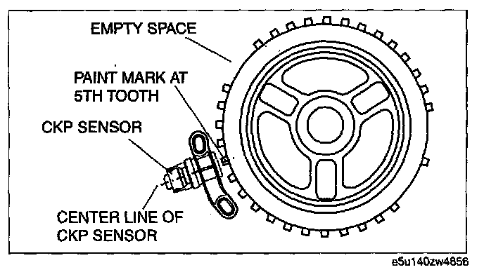 3. Align the center line of the CKP sensor and the line drawn in Step 2, then install the CKP sensor.