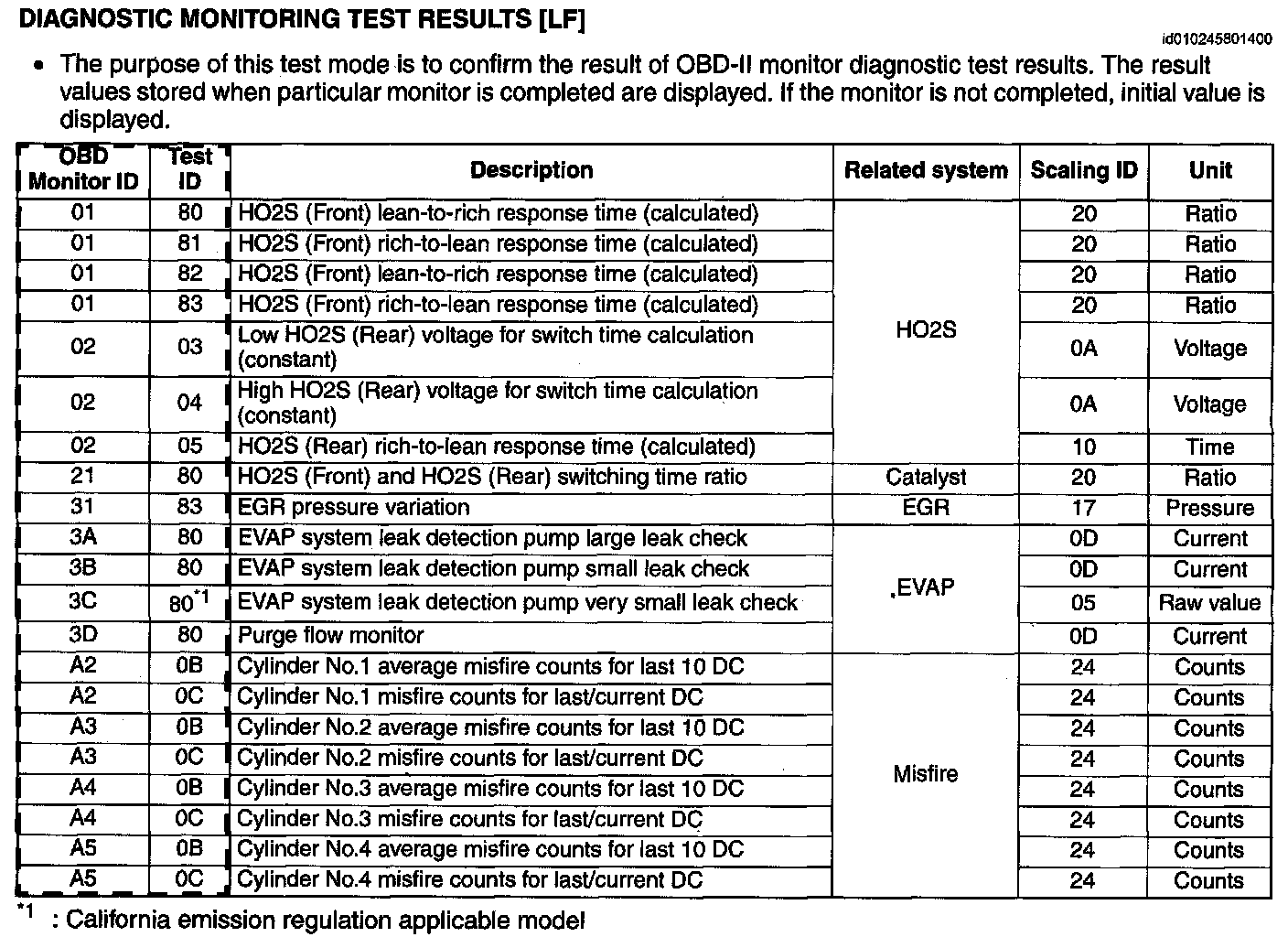 Diagnostic Monitoring Test Results [LF]: