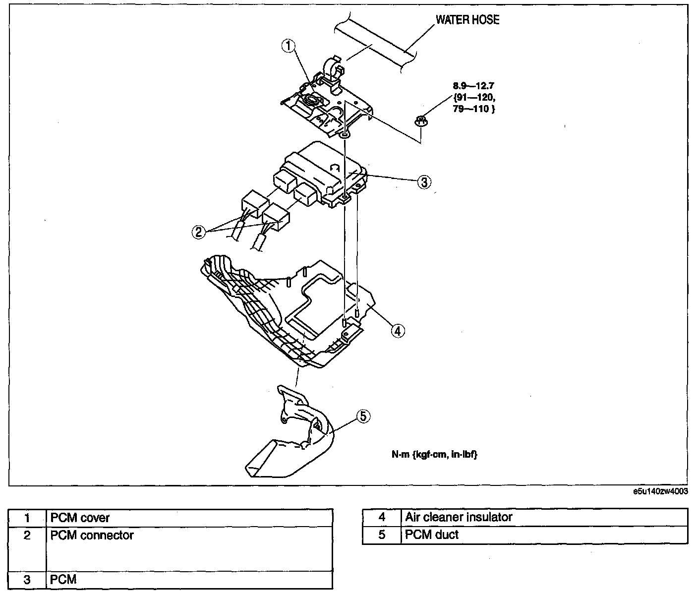 5. Move the water hose from the PCM cover slightly out of the way.