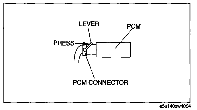 1. Connect the PCM connector fully into the PCM and push the lever until a click is heard.