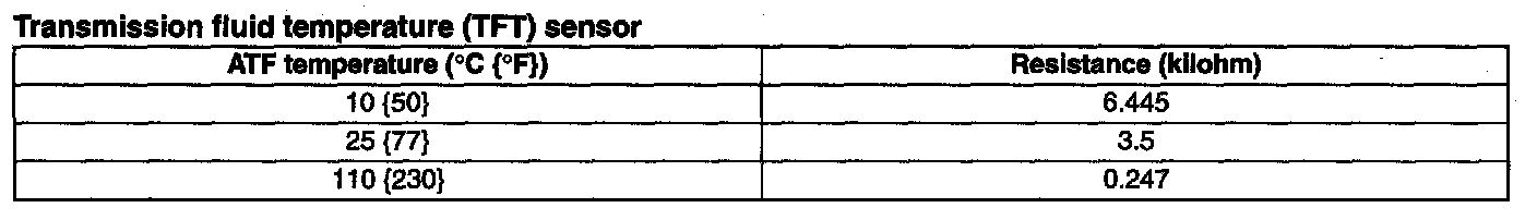 Transmission fluid temperature (TFT) sensor: