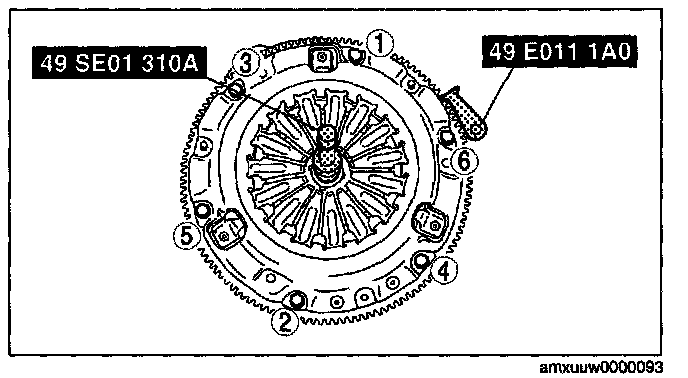 5. Gradually tighten the flywheel lock bolts in a crisscross pattern.
