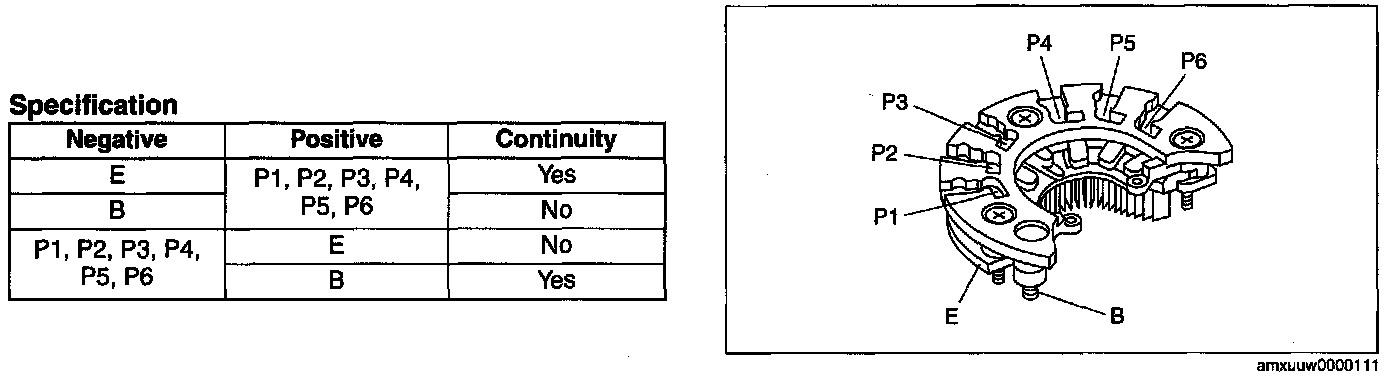 1. Inspect for continuity of the diodes using an analog circuit tester.