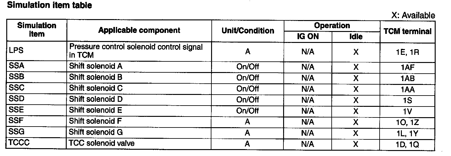 ^ If the operation of output parts cannot be verified after the active command mode inspection is performed, this could indicate the possibility of an open or short circuit, sticking, or operation malfunction in the output parts.