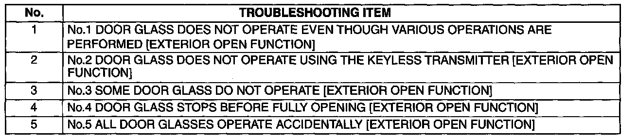 Symptom Troubleshooting Chart [Exterior Open Function]: