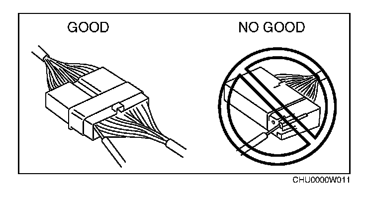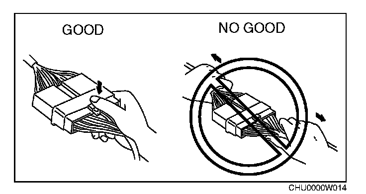 ^ Inspect the terminals of waterproof connectors from the connector side since they cannot be accessed from the wiring harness side.