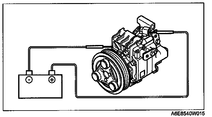 MAGNETIC CLUTCH INSPECTION [L3 WITH TC]1. Connect battery positive voltage to terminal A of magnetic clutch and ground to A/C compressor body.