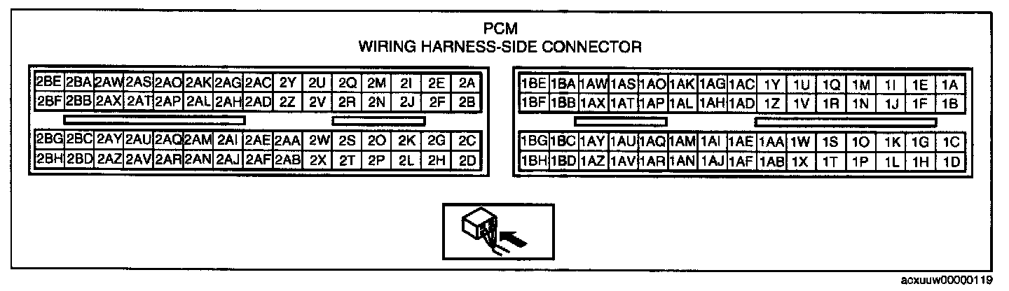 3. Verify that the PCM terminal 1Y and 1 AC voltages are as shown in the following table.