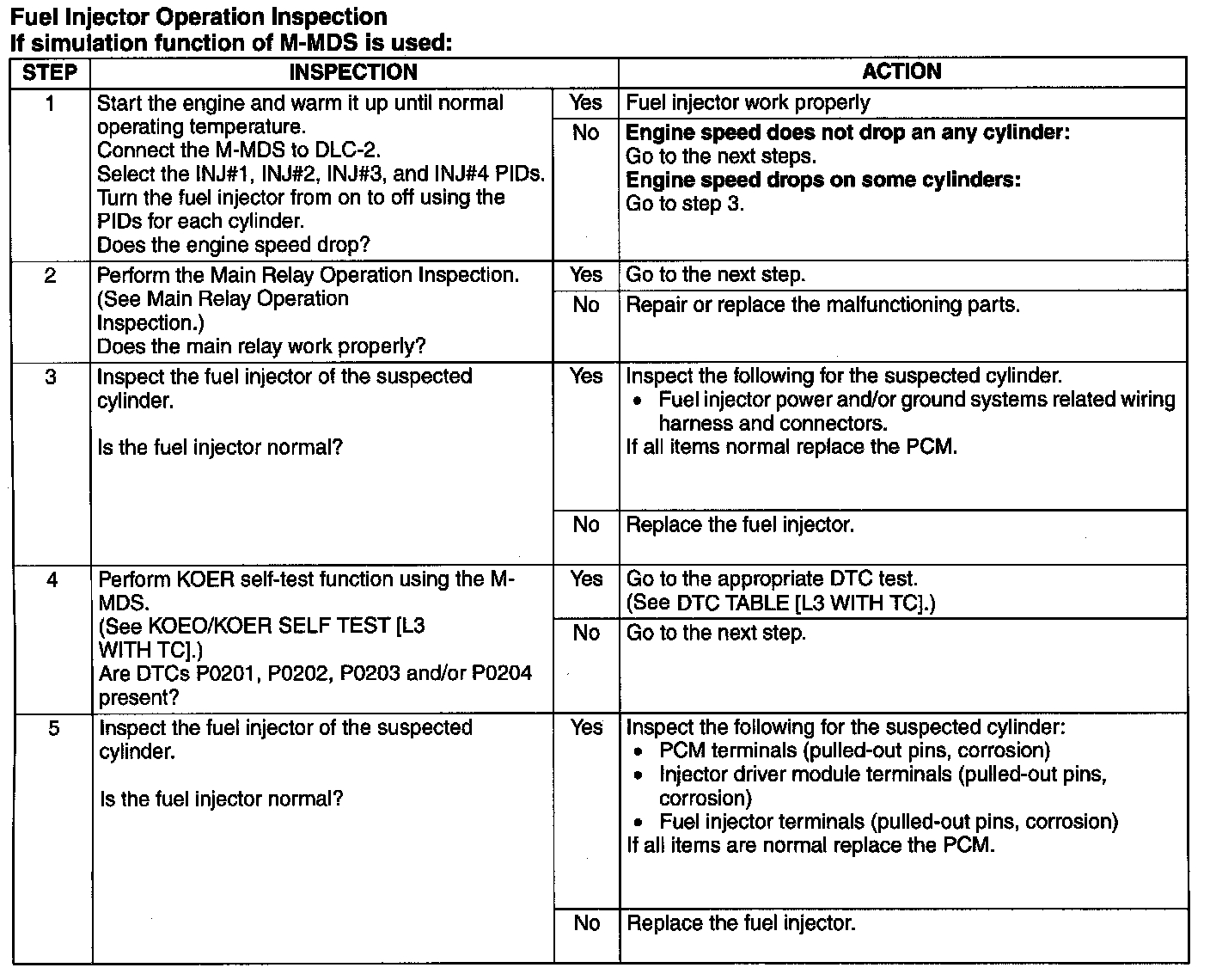 5. Clear the DTC from PCM memory using the M-MDS, after perform the spark test procedures and reconnect the injector driver module connector.