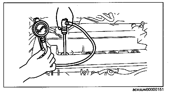 ^ If the pressure does not increase, valve seizure, valve attachment failure, or pressure leakage from the cylinder head gasket might be occurring. Perform overhaul servicing.