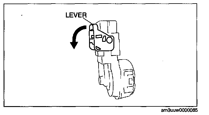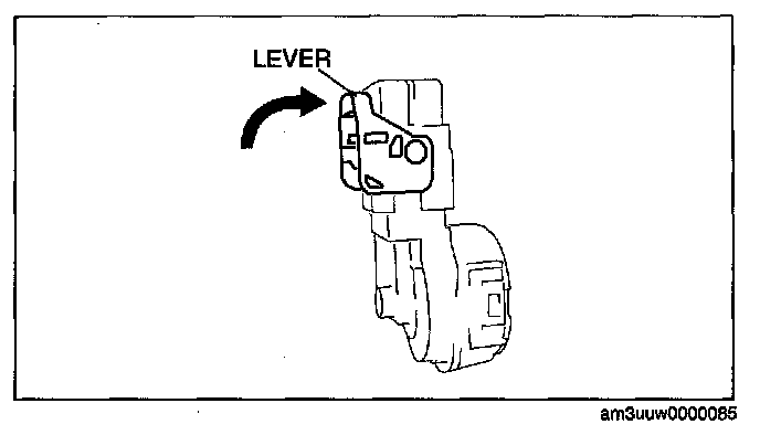 1. Rotate the lever in the direction of the arrow and remove the connector.