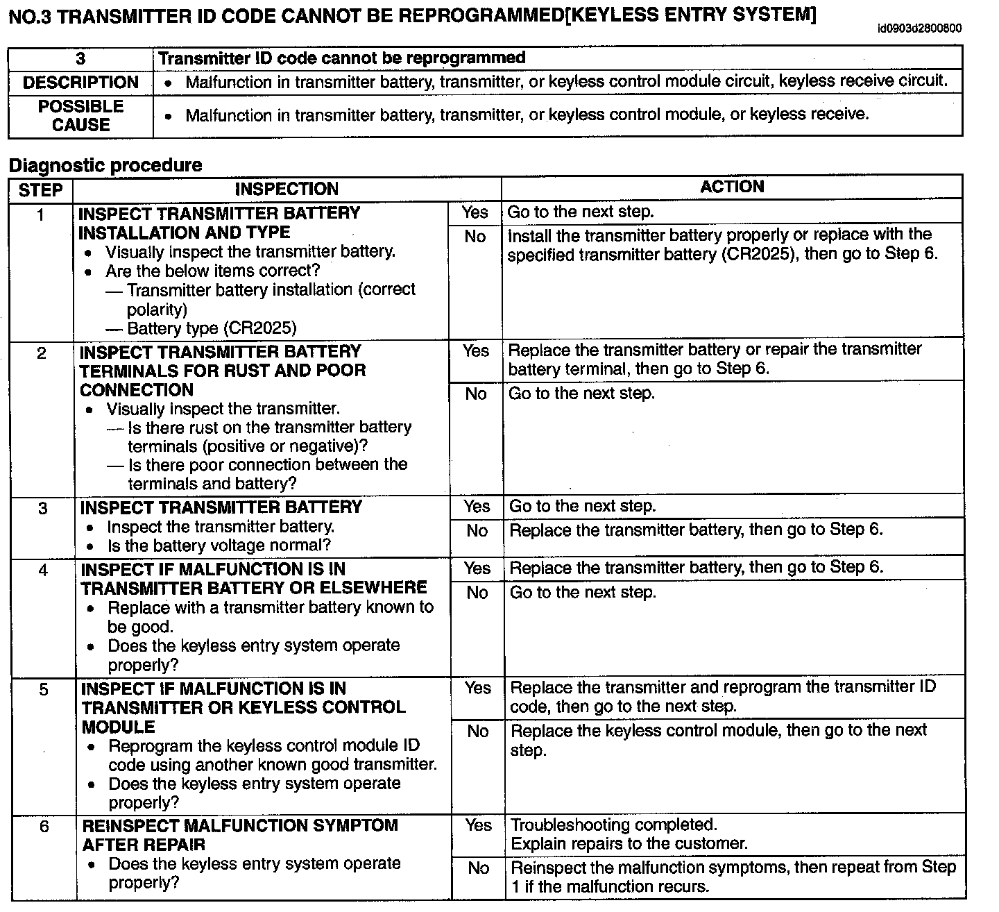 No.3 Transmitter ID Code Cannot Be Reprogrammed