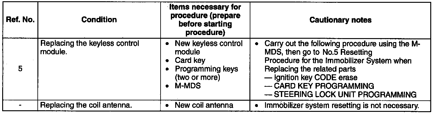 No.5 Resetting Procedure for the Immobilizer System when Replacing the related parts