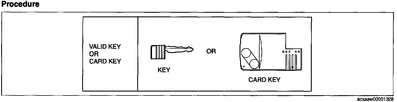 CAUTION: Do not place the card key in the vehicle when starting the engine with the valid key, otherwise programming cannot be performed. If the engine is started with the card key, remove the card key from the vehicle after the engine is started.