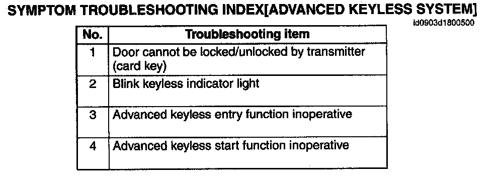 Symptom Troubleshooting Index[Advanced Keyless System]: