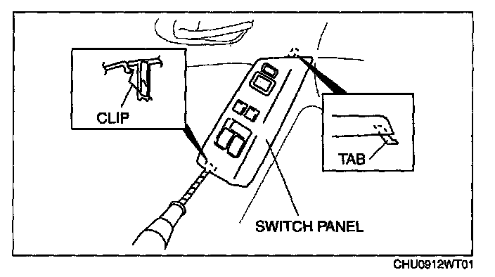 3. Remove the switch panel from the front door trim keeping the tab from catching.