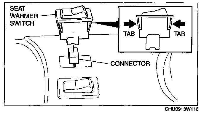4. Squeeze the tabs of seat warmer switch and pull it outward to remove it.