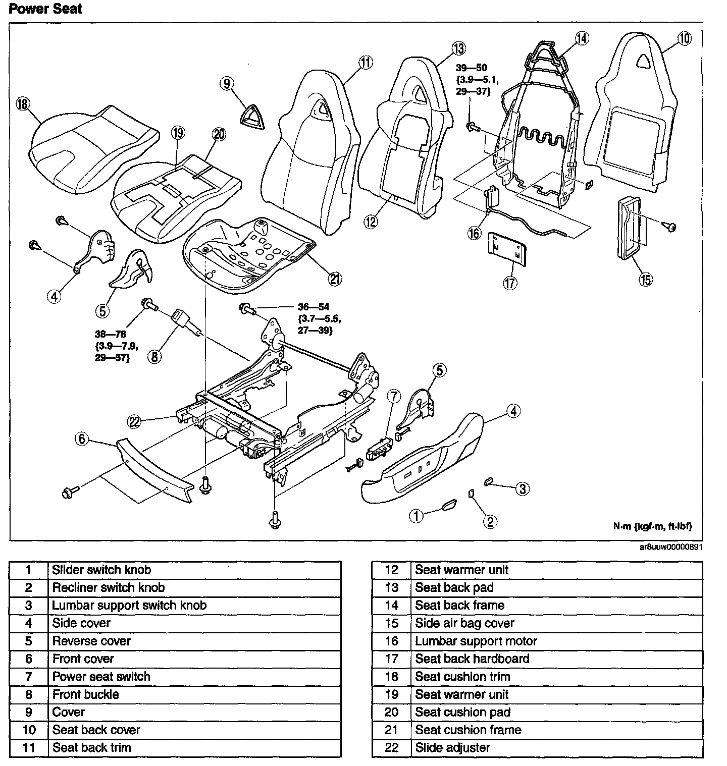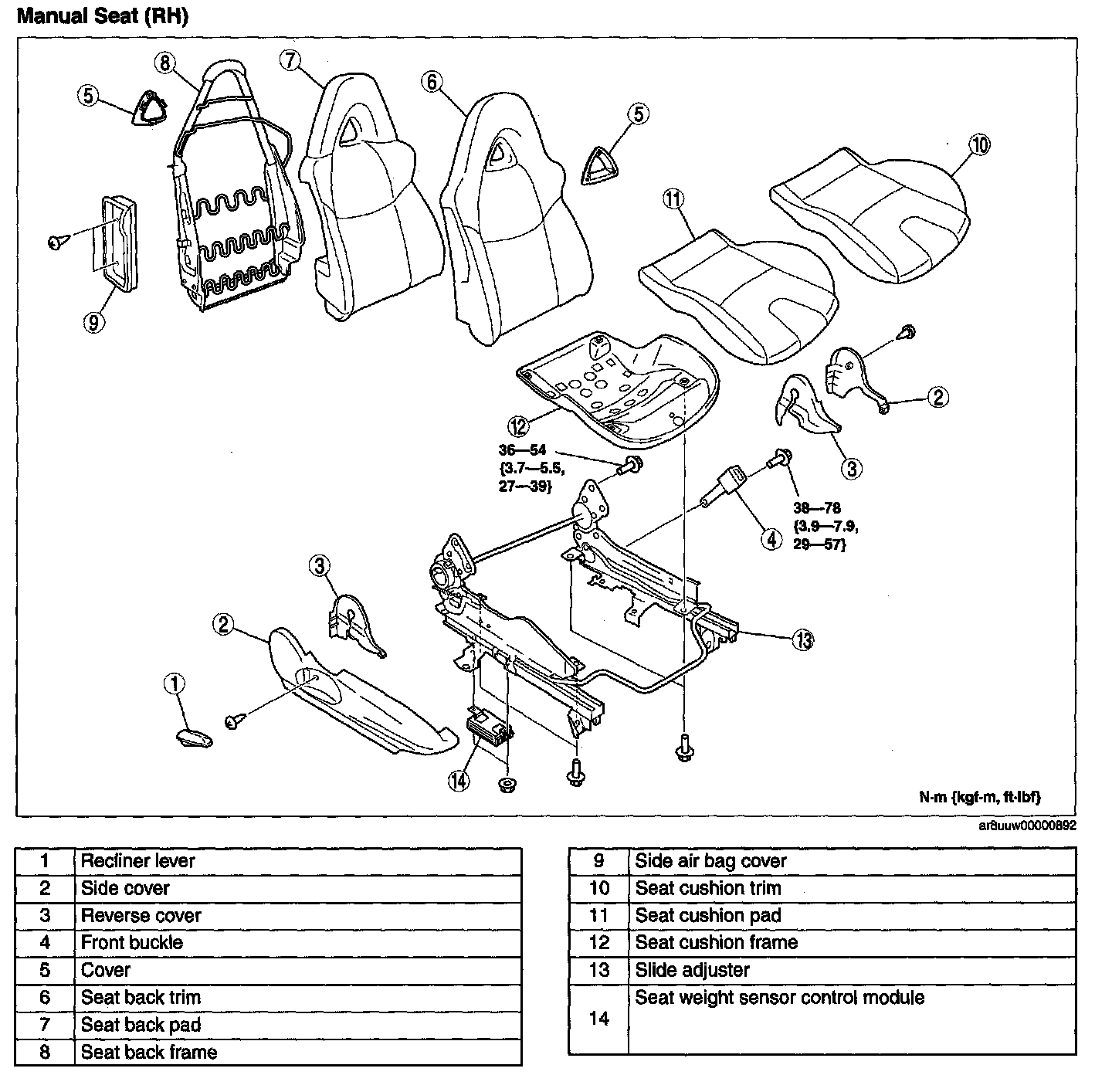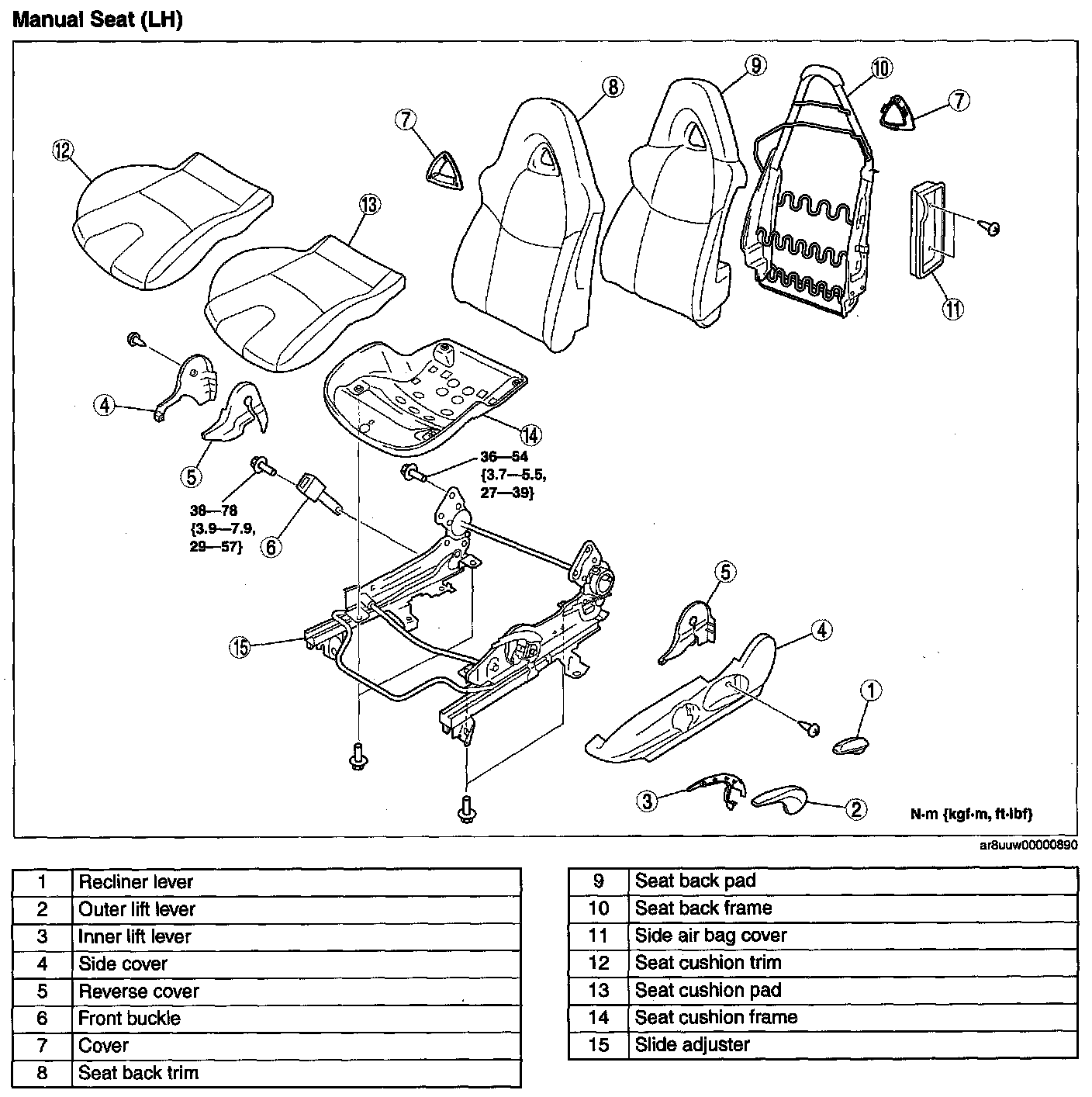 FRONT SEAT DISASSEMBLY/ASSEMBLYWARNING: Handling the front seat (with a side air bag) improperly can accidentally deploy the side air bag, which may seriously injure you. Read the service warnings before handling the front seat (with a side air bag).