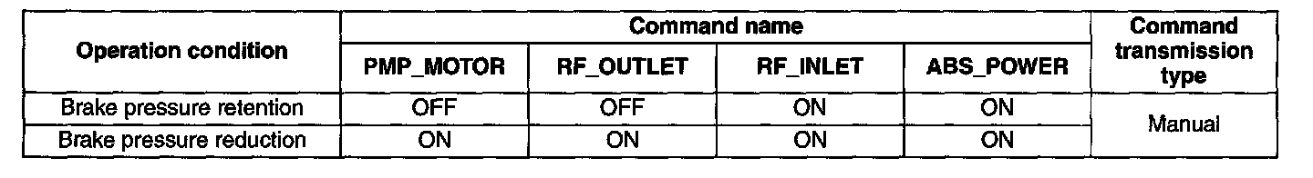 Caution: To protect the ABS HU/CM, the solenoid valve and the pump motor used during active command mode stay on for only 10 s or less each time they are switched on.