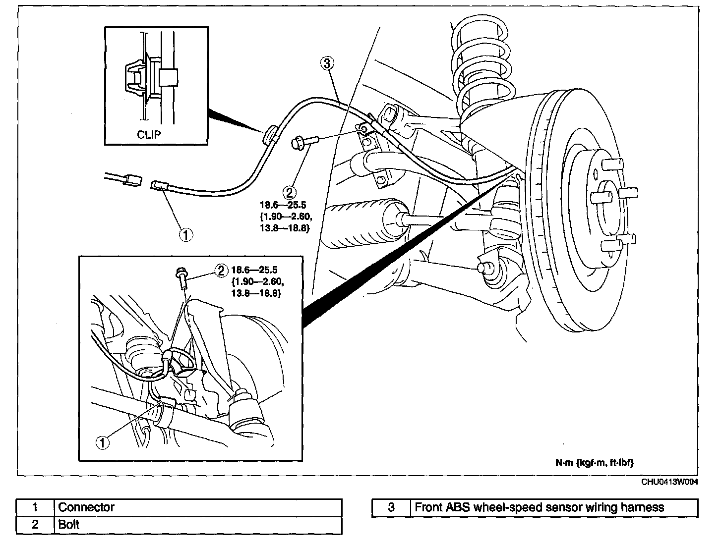 ^ If there is any malfunction in the front ABS wheel-speed sensor unit, replace the wheel hub component.