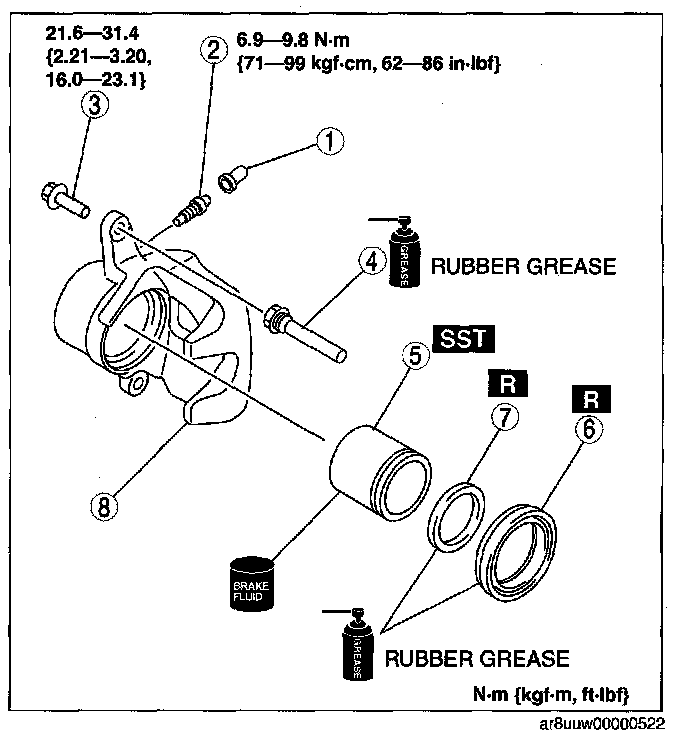 CALIPER (FRONT) DISASSEMBLY/ASSEMBLY1. Disassemble in the order indicated in the table.