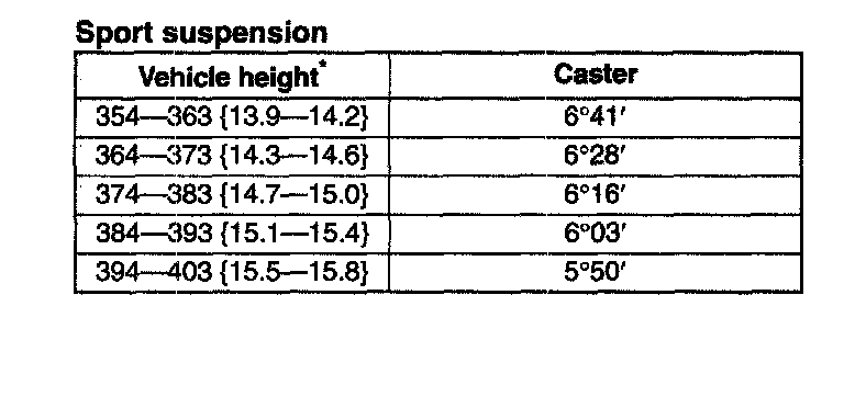 ^ The camber and caster change largely if the front cam is adjusted due to the suspension construction. If the rear cam is adjusted, the caster largely, however, the camber barely changes. Therefore, adjust the camber (front cam) and then the caster (rear cam) to adjust the alignment efficiently