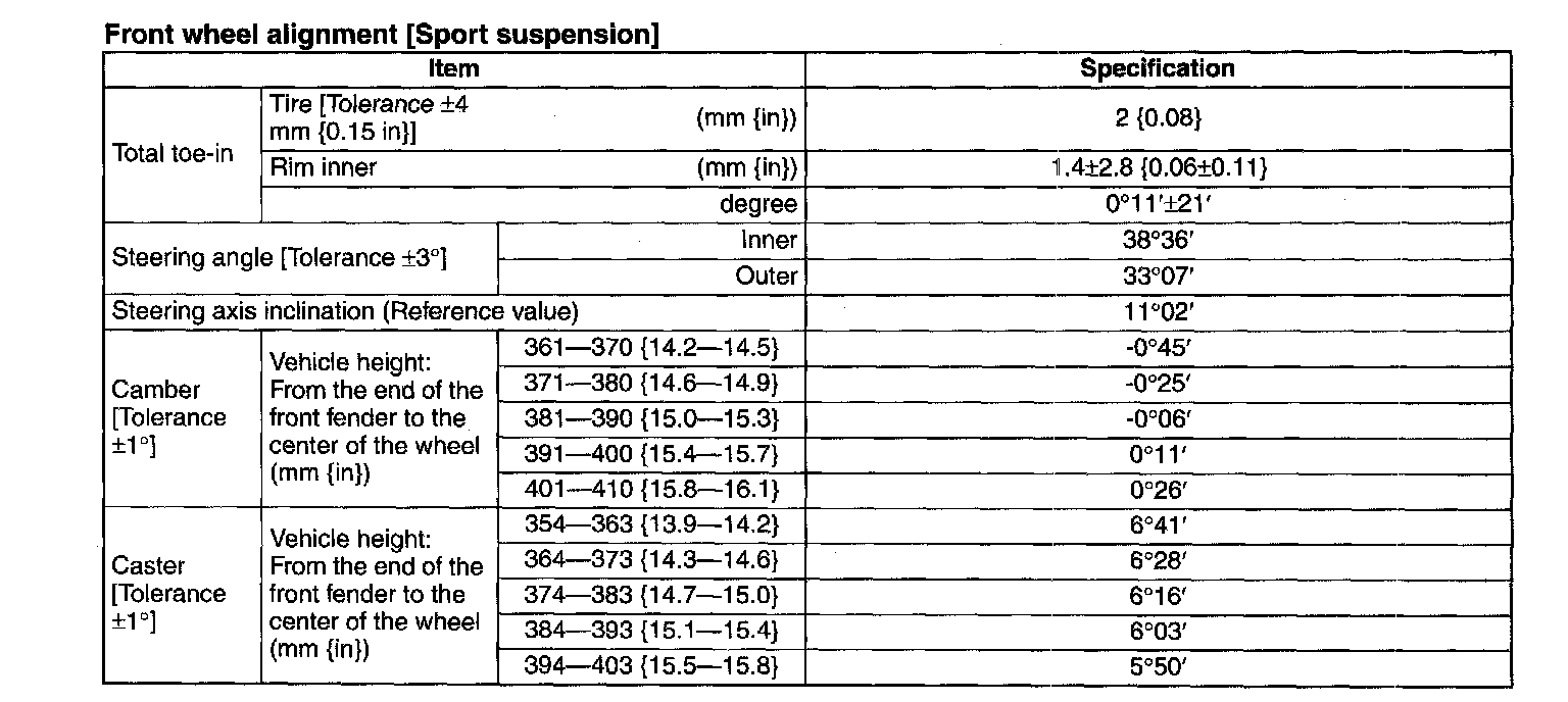 ^ Difference between the left and right dimension for camber and caster is within 1°.