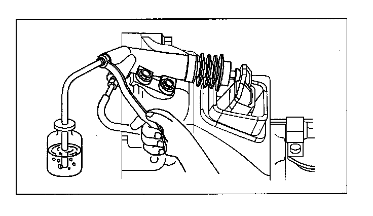4. While the clutch pedal is being held down, the other person should loosen the bleeder screw, and bleed any fluid containing air bubbles. Once completed, tighten the bleeder screw.