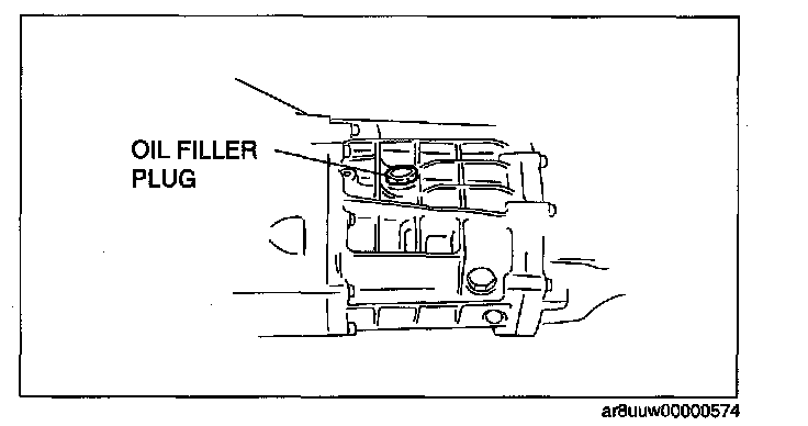 5. Add the specified amount and type of oil through the plug port for oil filler plug to near the brim of the port.