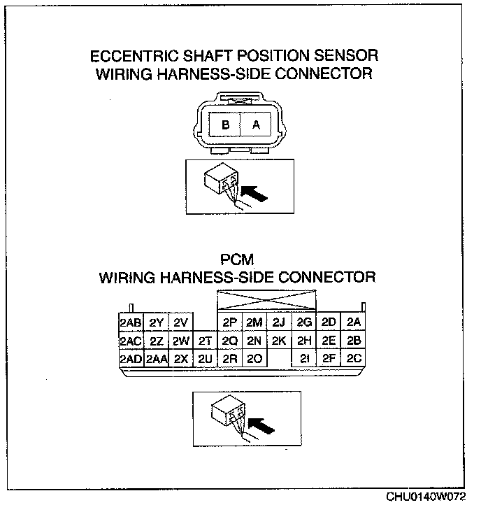 - Eccentric shaft position sensor terminal A and PCM terminal 2U