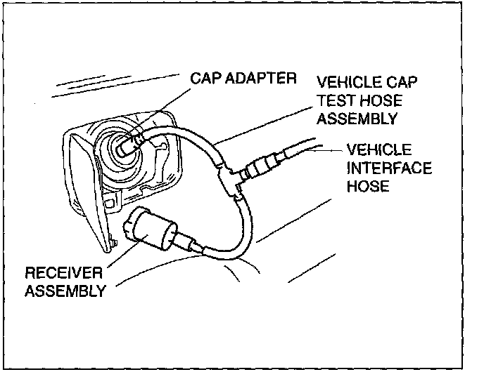 3. Connect the receiver assembly (SST: 134-01059) to the vehicle cap test hose assembly (part of the SST) and the fuel-filler cap from the vehicle.